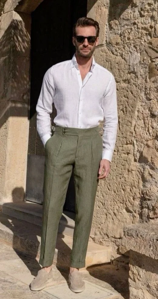 Linen suits or relaxed dress shirts: Pair a linen suit or a relaxed dress shirt with tailored trousers for a comfortable yet polished look